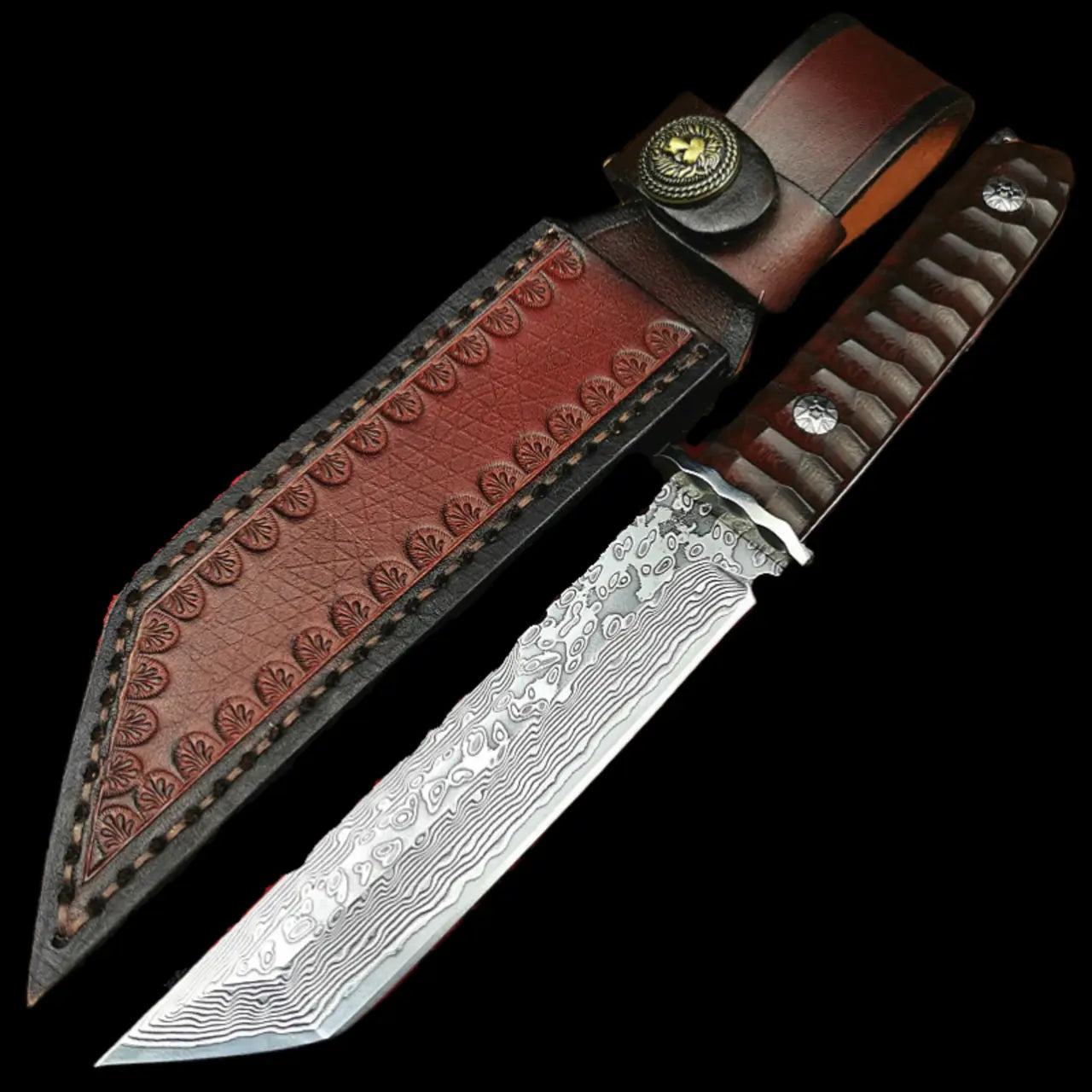Faca Artesanal Forjada à Mão em Aço Damasco • Bainha Grátis